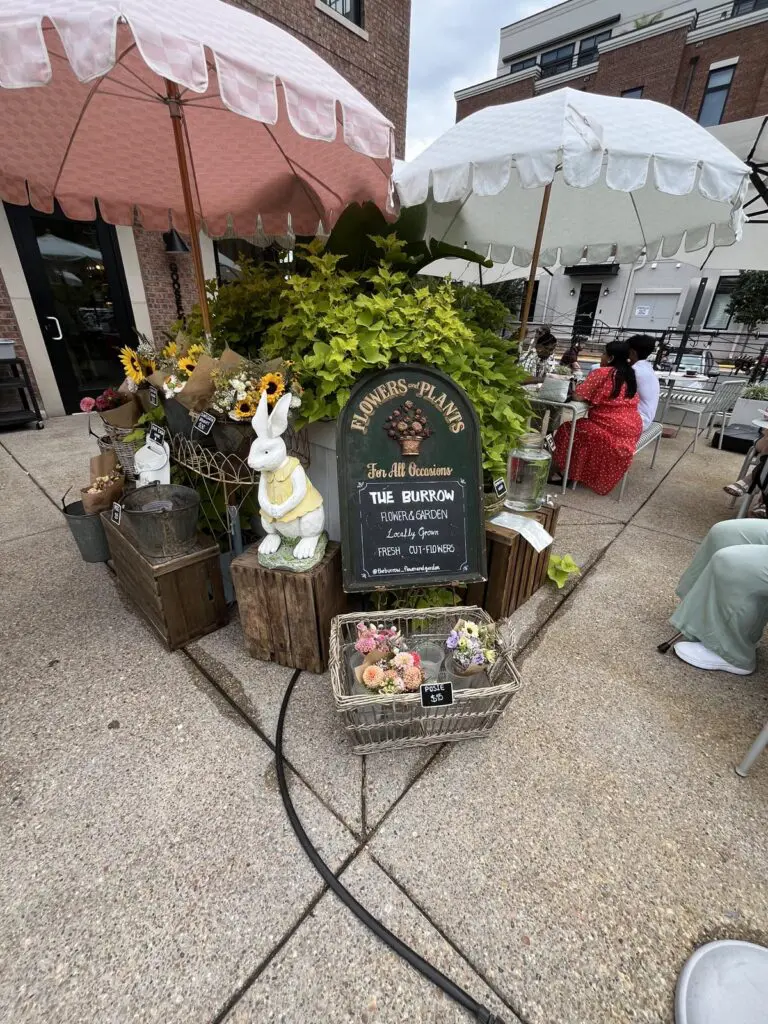 Directly next to the dining room was the outdoor seating area filled with benches, tables with umbrellas, and beautiful bouquets for purchase. I made a mental note to check it out after we were through.