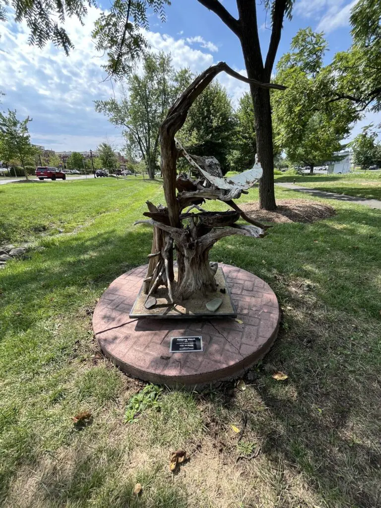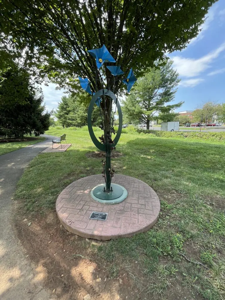 A half mile on the trail from Goosecup will lead you to Raflo Park. While there’s not too much in the way of playgrounds or flowers here, Pokemon Go is actually the reason we discovered this place. Raflo Park is home to a sculpture garden featuring the work of local artists courtesy of the Friends of Leesburg Public Arts which actually show up as PoGo stops in the game. Since 2016, the art has been replaced to showcase new work every two years. Although the works of art featured as Pokemon Go stops are no longer visible in person, we were still delighted to see such excellent talent from artists residing in the area.
