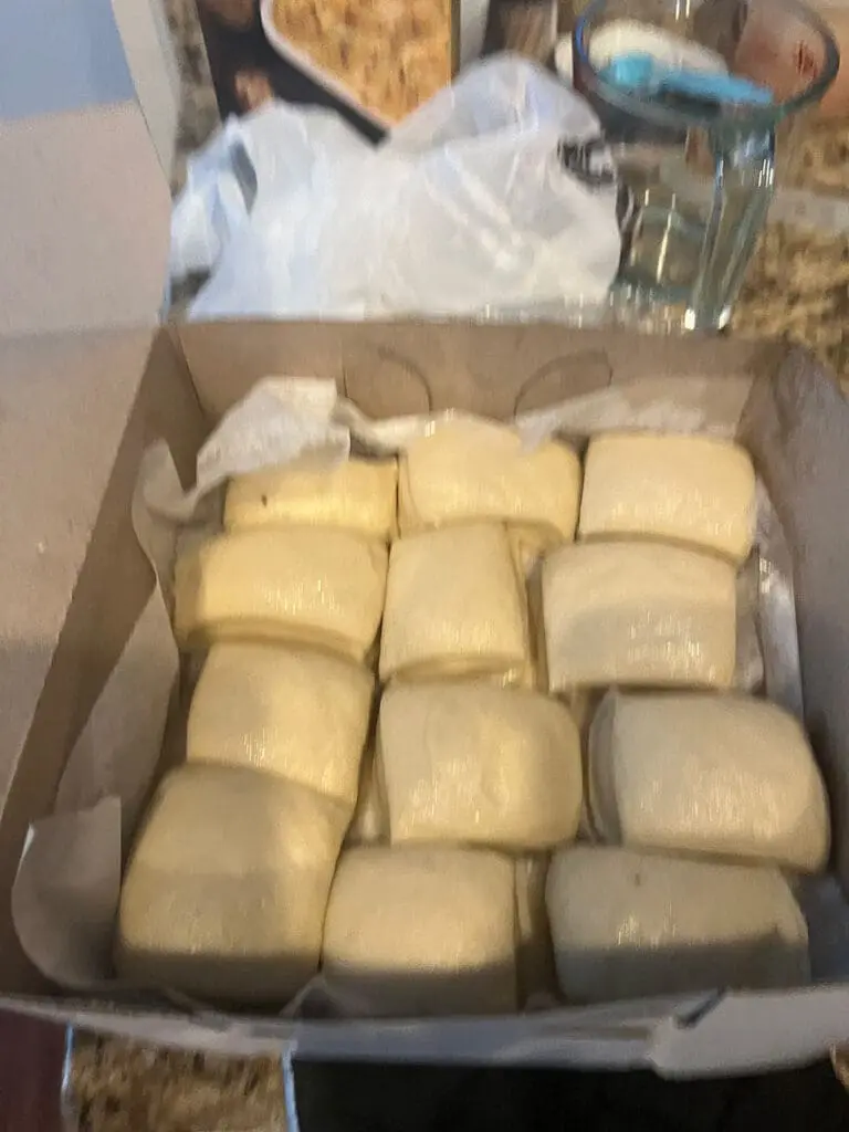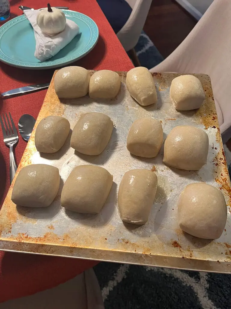 The rolls turned out AMAZING. In fact, they disappeared faster than the crescent rolls did from the basket. The two tubs of butter also were more than enough for all the rolls (surprise 🤣). We are definitely doing this again next year!