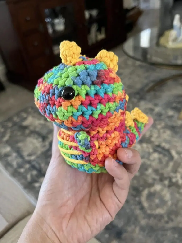 Since Eddie is at the age where he loves cuddly stuffed animals, I wanted to try my hand at making one of my own. Although I achieved success with the ice cream, I was worried about how long it took for me to create something and the amount of sleep I lost. One day while watching one of our favorite shows, Shark Tank, I saw a couple introduce their crochet for beginners company, The Woobles. They showed off adorable little crochet animals and explained how their target market was for people without crochet experience but wanted to learn.