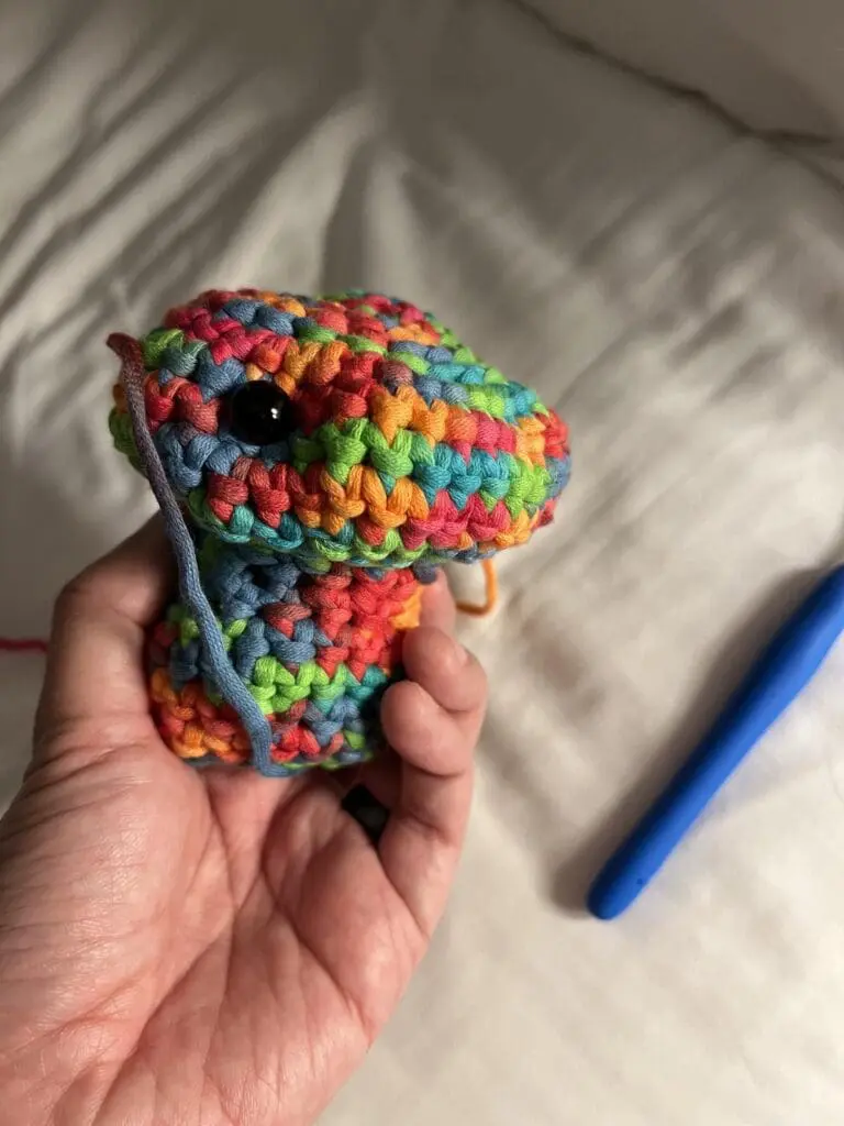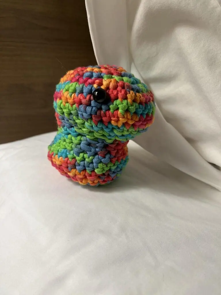 During the visit when Ma gave me the blanket, I was able to practice some basic stitches and she directly pointed out where the mistakes were. After that, I watched a ton more YouTube videos to try and learn. I finally obtained some minor success. I was able to create mainly flat, rectangular items like potholders and scarves. However, the cute little amigurumi characters I would see while scrolling through my Instagram feed were still a mystery to me. I figured that would never happen. 😢