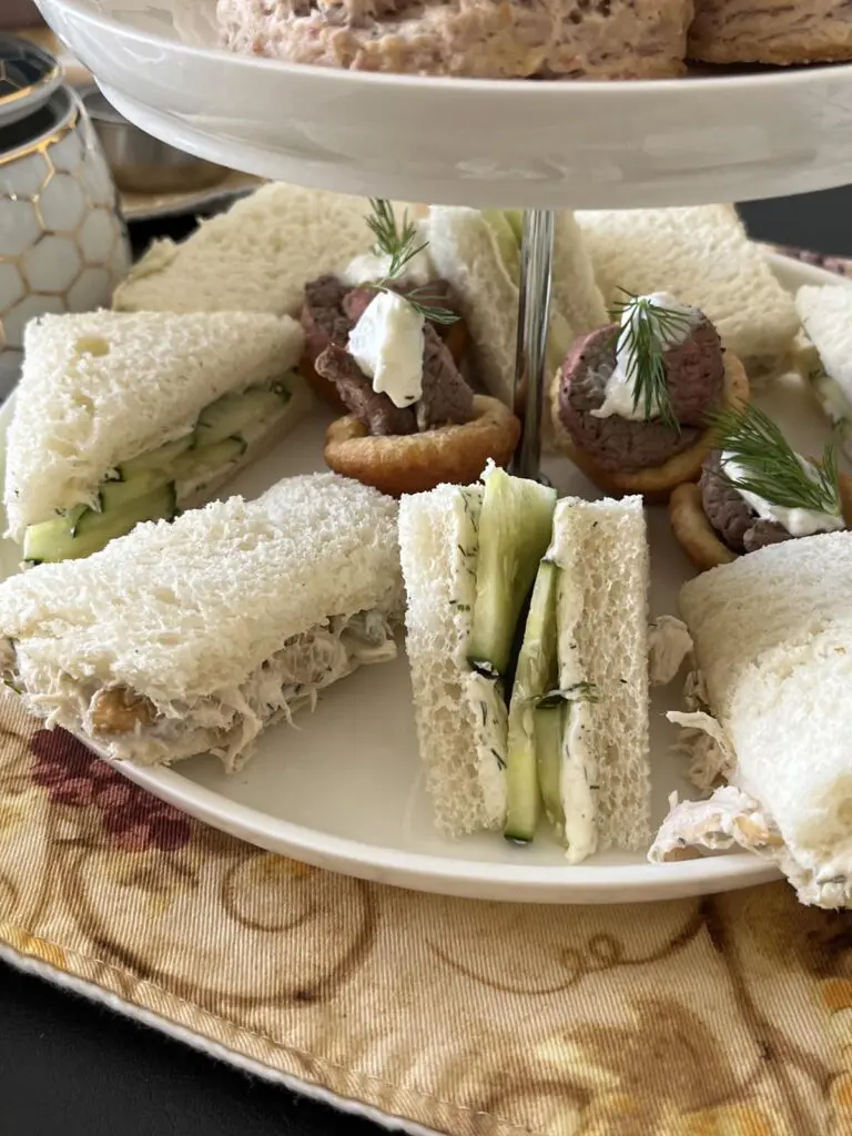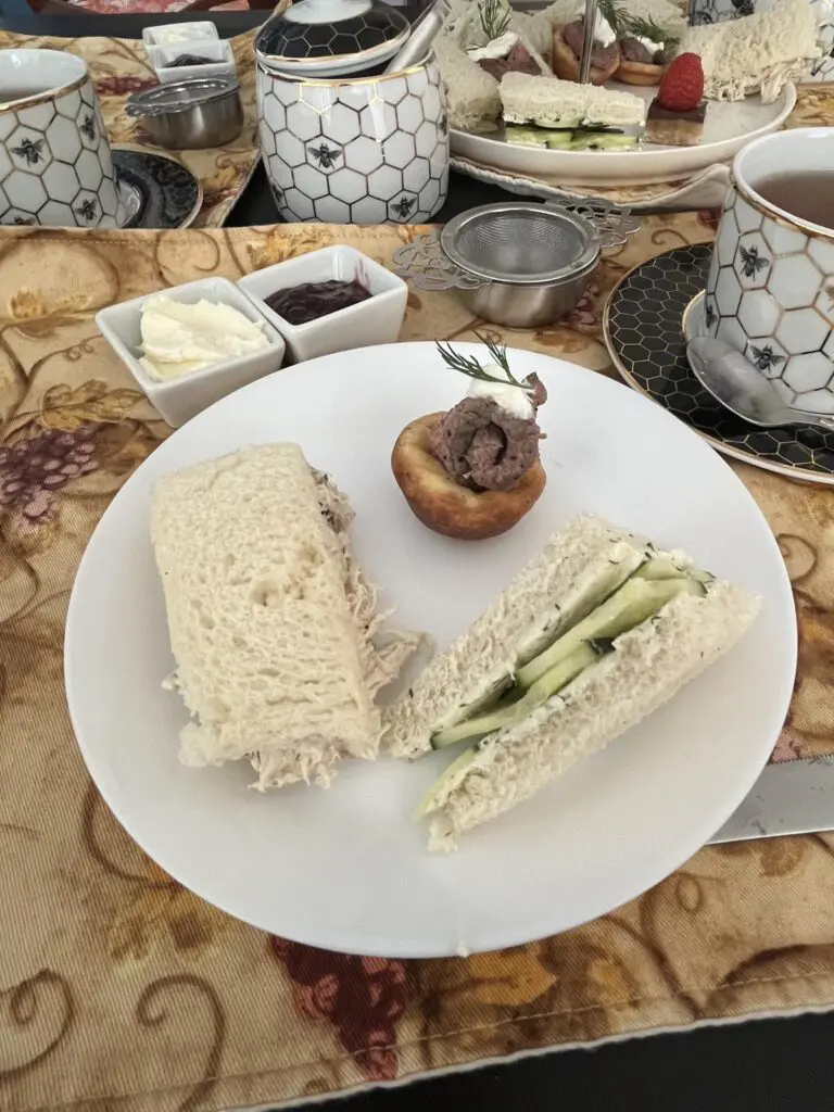 While my Yorkshire puddings might not be authentic, they still were yummy along with the horseradish sauce I made for the top. The savories were a hastily assembled for this tea, but everything still tasted really great!