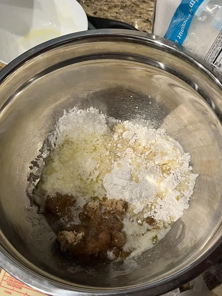 Since I’ve made so many RecipeTin Eats recipes, I’ve learned to trust the process. Caramel Slices start out with a shortbread base, so I expected it be similar to what I typically make for lemon bars: butter, flour, sugar, and salt. However, there was a surprising addition to this shortbread: coconut. I was a little confused, but Nagi has never led me astray. Trust the process, I reminded myself.