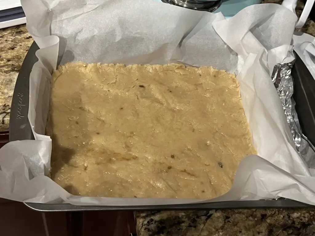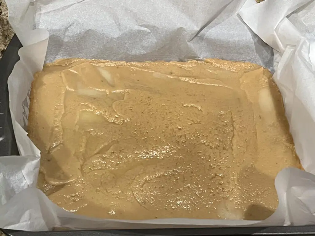 The base came together quickly, and I stuck it in the oven just as the recipe advised. After baking for the appropriate time and removing it, things seemed to be going as planned (so far).