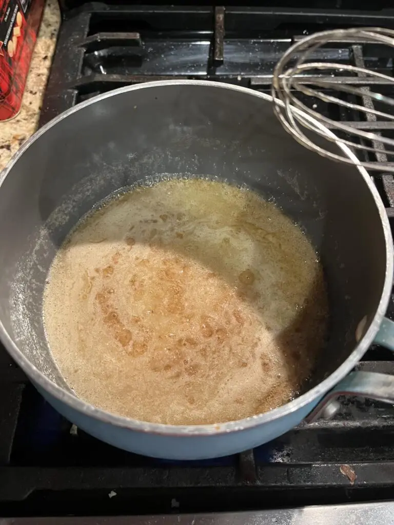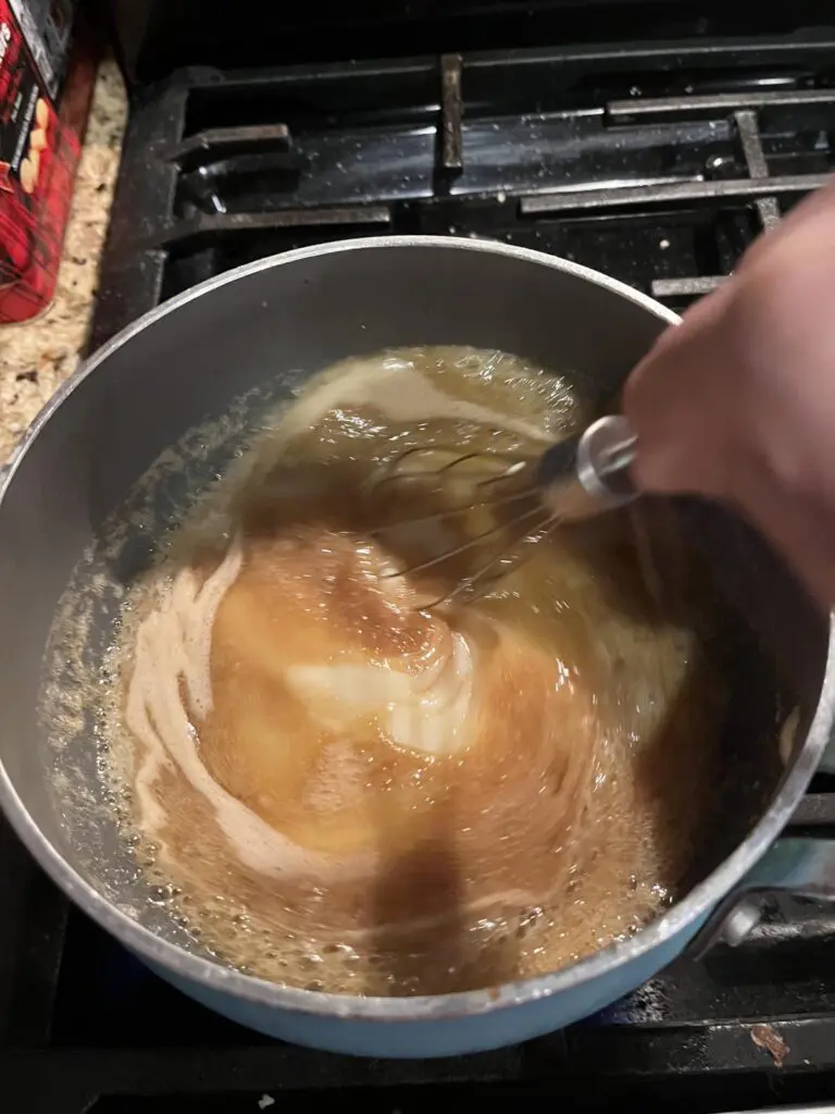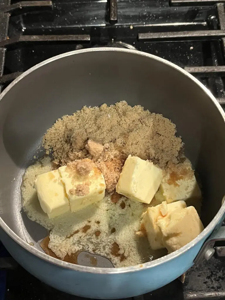 The caramel called for a precise measurement of butter and brown sugar before putting it on the stove and letting the heat (and a whisk) do its work.