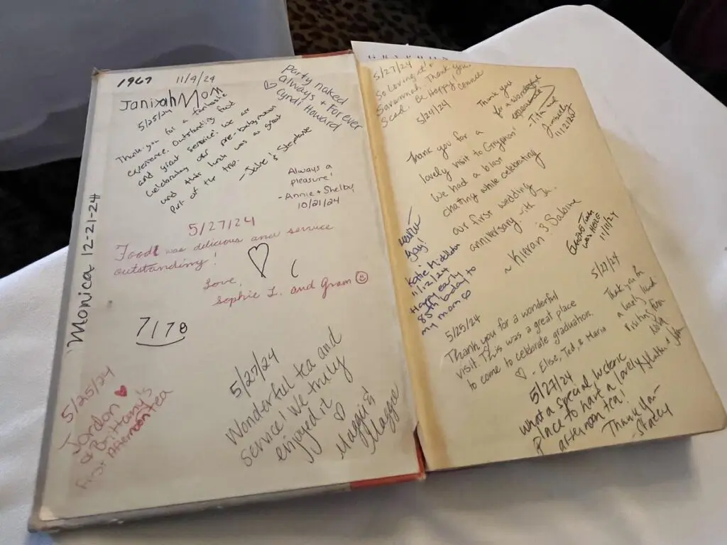 As we finished our meal, our bill was placed on our table in a book. I opened the book which actually turned out to be filled with messages from previous guests.