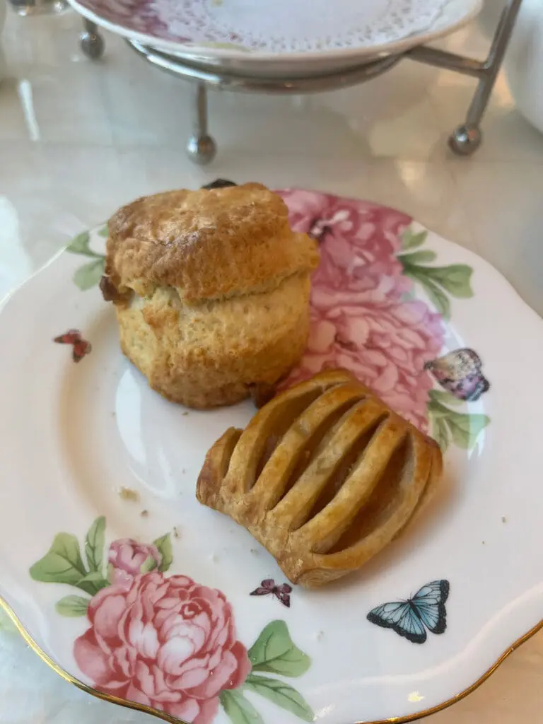 For my choices, I stuck with the classic egg salad and traditional cucumber sandwiches that are so customary for tea. Xak chose the chicken salad and brie & apple. The only sandwich we weren’t able to taste was the smoked salmon. Although both Xak and I enjoy salmon for dinner, he’s not a big fan of smoked salmon (or lox) on bagels which is what the sandwich would likely be similar to. I was a little disappointed because I do enjoy smoked salmon, but trying 4 out of 5 sandwiches is still pretty good.