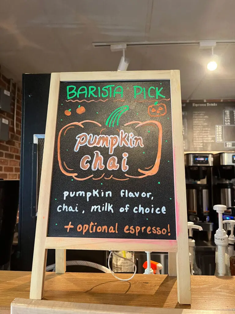 Although there were signs for some seasonal specials, Xak surprisingly ordered my standard order of a Cafe Mocha to go. While we waited, I contemplated if my stomach had room for the slice of coconut cake on the cake stand but decided to resist.