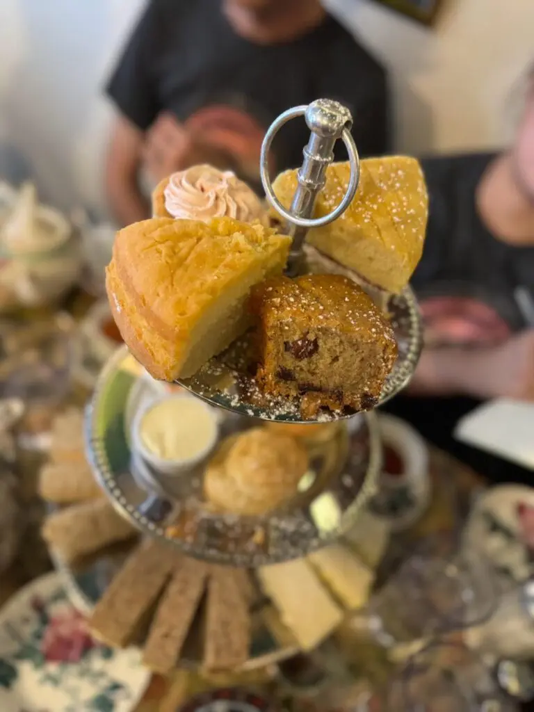 Considering the amount of sandwiches we got, like an American, I was just a tad bit surprised that we received only one normal sized scone. 😄 At most tea rooms you typically get one to two scones, so this is not out of the ordinary. I’m used to Xak’s delicious English Cream scones that he makes for most of our afternoons at home and these were quite different in both texture and taste.