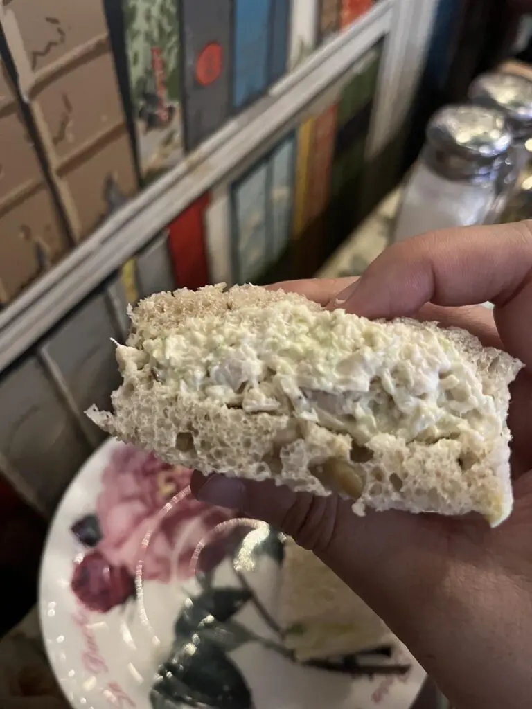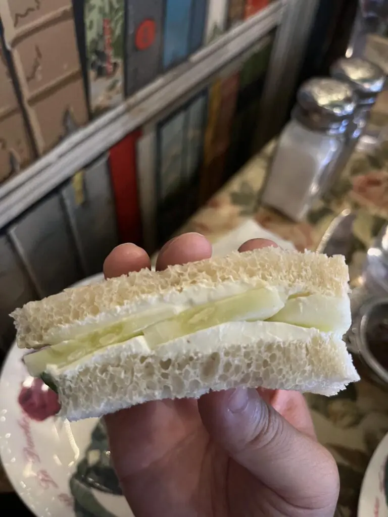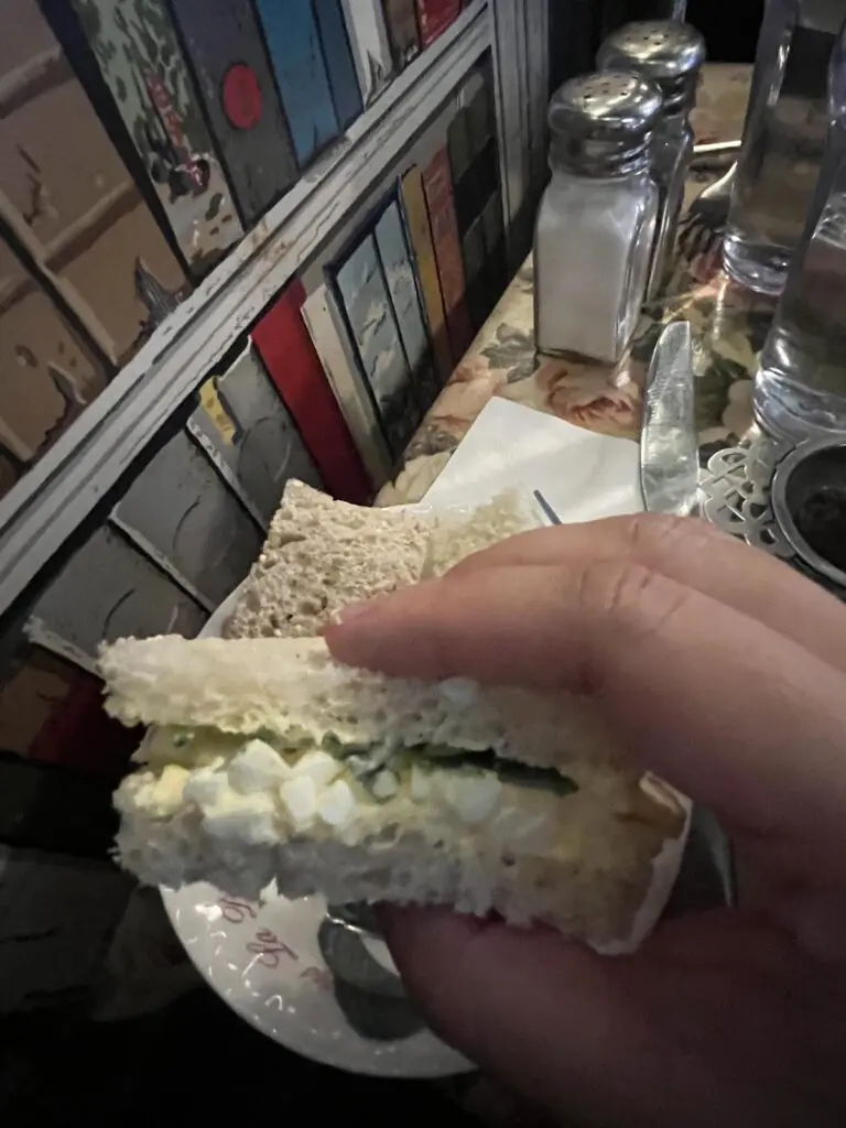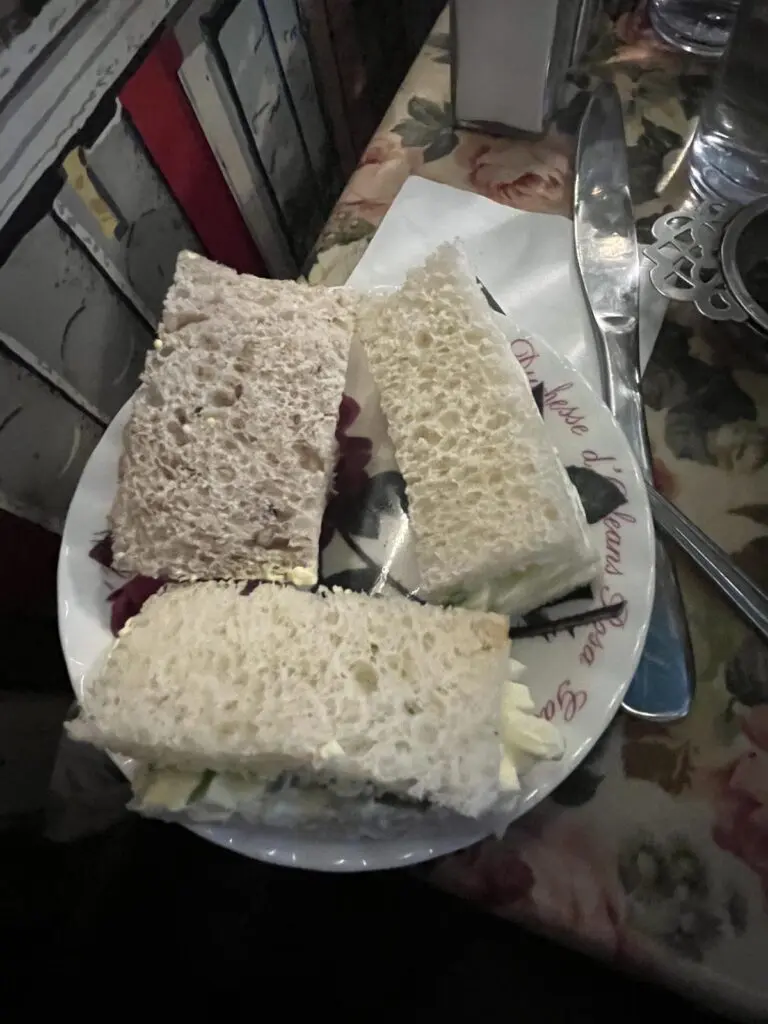 Our plates were about the same size as our saucer, so I could only fit three sandwiches at a time. The sandwiches included the following: