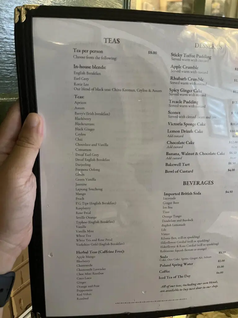 Nicky Perry, the owner from UK, has provided “proper cuppas” since the 90s alongside her late husband, Sean who passed away in 2023. Over the years, the two opened a grocery store called Carry on Tea and Sympathy and a fish and chip shop called A Salt and Battery, both which are located next door. Several celebrities have graced the doors of Tea and Sympathy and enjoyed tea at this well known New York establishment.