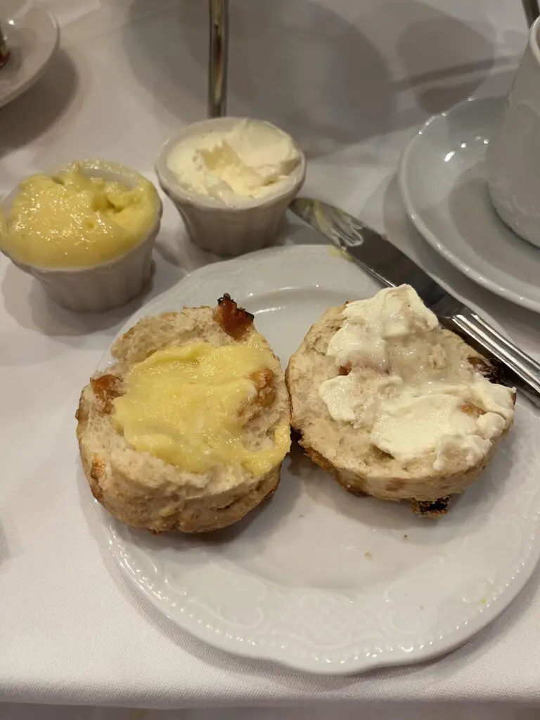 - Peach Cinnamon with clotted cream, lemon curd, and Dickinson’s preserves