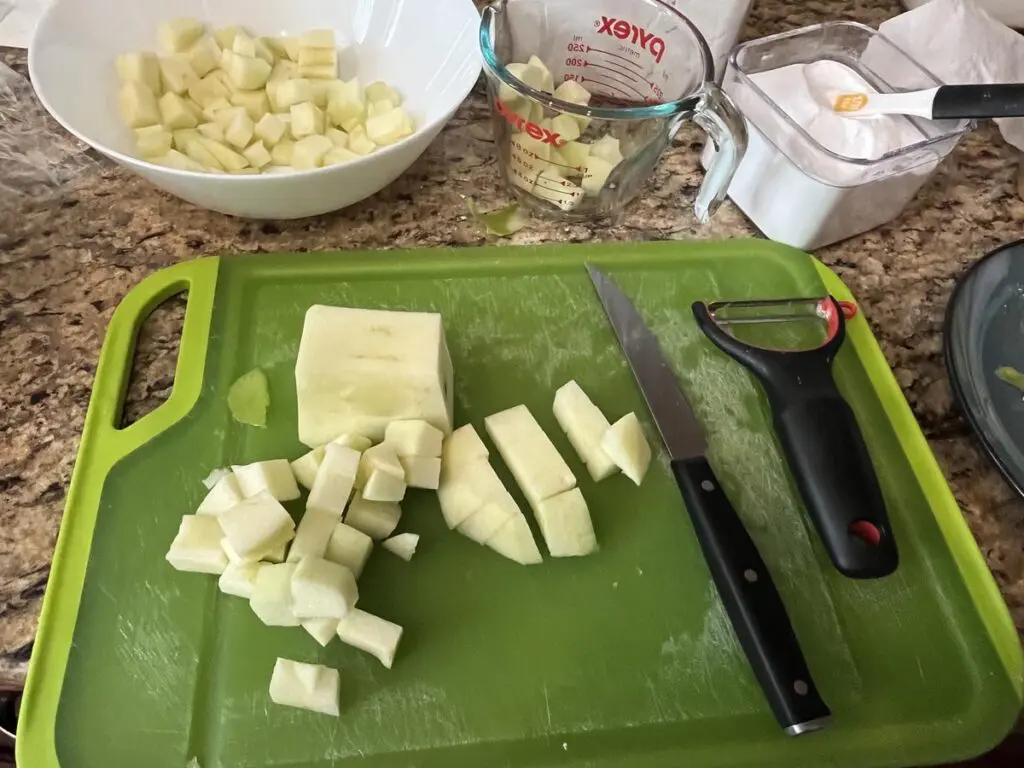 Tea parties at home are both fun and extremely time consuming. I am lucky that both Xak and I split the work evenly. For this particular tea party, I would be in charge of the colcannon soup, the Reubens (with the sauerkraut and Russian dressing), and the Irish Apple Cakes. Xak planned on taking the hot cross buns and the cucumber sandwiches. While savories are typically my responsibility, Xak has watched me prepare cucumber sandwiches so many times that he could easily handle it so I could focus on stressing out over the Reubens. 😄