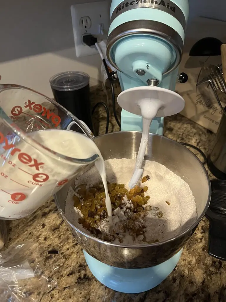 While Hot Cross Buns aren’t necessarily associated with St. Patrick’s Day nor do they have any pink or green to be Wicked themed, we decided to make these instead of our regular scones since they would be delicious paired with the Irish butter we bought for the Irish Apple Cakes. Yes, it’s a stretch, but who really needs a reason to make hot cross buns?