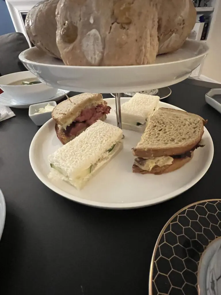 Since we were going for an afternoon tea vibe, I reluctantly cut the Reuben into thirds to be more “finger sandwich” appropriate. Regardless, this truly is one of the best things to come out of that oven. We are 100% buying discounted corned beef briskets in bulk next year.